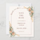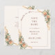 Anuncie seu dia especial com este cartão elegante e romântico de "save the date" que apresenta tons suaves de champanhe, flores delicadas e detalhes de fitas fluidas. Projetado com uma borda refinada e um sutil destaque em letra cursiva, este cartão cria uma primeira impressão atemporal e sofisticada para o seu casamento.