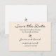 Com um pequeno motivo de abelha inspirado na arte original de Helen Wagner, este cartão de aviso de casamento combina com o convite de casamento e a resposta no mesmo design; é simples, elegante e muito atual. Com um toque rústico, este é um design neutro ideal, perfeito para iniciar a declaração do seu casamento.
