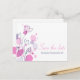 Um belo e simples cartão postal de casamento com contorno de flor roxa e azul-marinho e pétalas gráficas. Parte do conjunto de casamento com pétalas de flores modernas gráficas. Um design exclusivo e elegante de Sarah Trett.