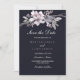 Cartão de aviso de data para casamento roxo azul marinho floral elegante