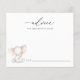 A placa de atividade do chá de fraldas apresenta elefante de cor d'água. O cartão de aconselhamento incita os hóspedes a partilharem conselhos para os pais se prepararem para o bebê.