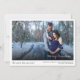 Cartão de Anúncio de Gravidez Fotográfica Bonito com um padrão listrado de Natal vermelho atrás.