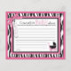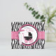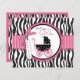 Carruagem de bebê com zebra e impressões de pontos e um cartão de nota de arco rosa-quente com "palavras de conselho".