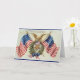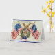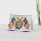 Cartão de felicitações patriótico vintage. Bandeiras e uma águia dourada! A Liberdade Sorri, Seu Destino Seguro, Sob as suas Estrelas Firmes!
