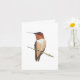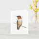 Placa de saudação do vazio com um beija-flor rufo empoleirado em uma ramificação.
