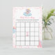 Esta adorável carta de bingo chá de fraldas apresenta uma ursinha koala menina flutuando em uma nuvem segurando um coelho recheado com um roteiro elegante e texto moderno para seus detalhes. O dorso apresenta um urso koala segurando um balão. Fácil de personalizar clicando em "Personalizar".