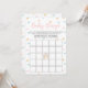 cartão de bingo de chuvada de bebê com arco-íris pastel e corações.