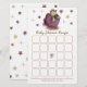 Jogo de bingo divertido para chuvinha de bebê com um adorável dinossauro saindo de um ovo rosa. Ótimo para chuvinhas de bebê de menina. Ilustrado e desenhado por Patricia Alvarez.