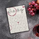 Cartão de bingo de provando de vinho em branco com manchas de vidro de vinho de burgundy e um roteiro de pincel de na moda.
