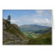 O cartão com a foto de Blencathra caiu de Rigg alto com a parede de pedra seca e a árvore de abeto no primeiro plano.