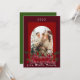 Cartão de Natal, cor vermelha cereja e fundo verde natureza com código QR para redes sociais ou site. Adicione sua própria foto da família ou loja. Também pode ser adicionado ao presente.