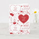 Um cartão de saudação projetado com um padrão de valentine com dois nomes, vermelho sobre branco. Personalize o cartão de saudação com os nomes do seu coração, cor de fundo, entre outras opções.