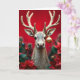 Cartão de Boas Festas com Rena de Fundo Vermelho