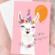Lhama diz... é hora de festa! 🎉 Este adorável cartão de celebração apresenta um lhama elegante e divertido com um balão festivo e um trocadilho divertido que é perfeito para aniversários, congratulações ou qualquer momento digno de celebração. Com seu design alegre e tema de animal da moda, este cartão certamente vai deliciar os amantes de animais, fãs de trocadilhos e crianças de todas as idades.