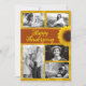 Cartão de foto de Ação de Graças feliz com girassol. Cartão laranja-avermelhado e amarelo com saudação e cinco modelos para fotos da família, crianças, animais de estimação ou o que você quiser. As fotos de amostra são em preto e branco, mas as suas não precisam ser. Este design também é oferecido como download instantâneo para compartilhar digitalmente.