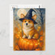 Cartão de Boas Festas de Corgi Abobrinha Bruxa Feiticeira Feliz Halloween Outono para Postcrossing
