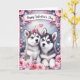 Impresso à mão com amor, este cartão de cumprimentos dobrado traz um momento suave e cheio de coração para o dia de alguém. A frente apresenta dois adoráveis filhotes de husky emoldurados por rosas, com uma faixa suave de "Feliz Dia dos Namorados" e pequenos corações flutuantes. No interior, há uma superfície lisa e em branco para suas próprias palavras - perfeita para notas manuscritas, declarações secretas ou um simples "pensando em você". O acabamento do cartão e as cores vibrantes fazem a ilustração brilhar, sentindo-se como qualidade nas suas mãos. Cada cartão é projetado com amor.
