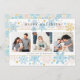 Este cartão moderno e delicado é perfeito para enviar votos de Natal e Festas para familiares e amigos. O design apresenta uma decoração ao longo das bordas superior e inferior, com flocos de neve em diferentes tamanhos e cores suaves. Três fotos da família são exibidas no centro. Este cartão elegante é ideal para celebrar o Natal e todas as festas durante a temporada de inverno.