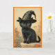 Cartão de Boas Festas de Gato com Chapéu de Bruxa
