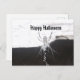 Cartão postal de Halloween com uma foto de uma Aranha de Teia Orbicular.