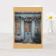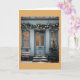 Aproveite nosso cartão clássico de Natal com uma imagem de uma porta elegante com guirlanda decorada. A borda é dourada. Este cartão pode ser personalizado. A mensagem interna diz Desejando-lhe paz e prosperidade no próximo ano.
