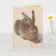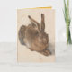 Albrecht Dürer, Lebre Jovem, 1502, aquarela e cor de corpo, Albertina, Viena. Design em cartão de felicitações vertical com gradiente de cor amarela no interior.