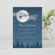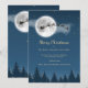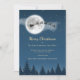 Um cartão de Natal, adequado para todas as gerações e sexos. Este cartão apresenta um fundo escuro e sombrio, iluminado por uma lua cheia brilhante. Papai Noel e sua equipe de renas fiéis estão silhuetados contra o brilho da lua. O design evoca uma atmosfera de emoção e expectativa em relação às celebrações que se aproximam.