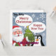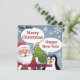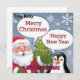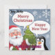 Espalhe alegria natalina com este adorável cartão de Natal com o Papai Noel dizendo "Feliz Natal" e um pinguim fofo acrescentando "Feliz Ano Novo". Perfeito para enviar votos calorosos e sorrisos nesta temporada!