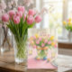 Cartão de Boas Festas de Páscoa com Tulipas Rosa p