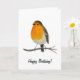 Este cartão de aniversário apresenta uma pintura original em aquarela de um alegre Robin Redbreast empoleirado em um galho. Os cumprimentos na frente e no interior do cartão podem ser facilmente personalizados, tornando este um cartão perfeito para qualquer pessoa.