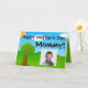 Cartão do Dia das Mães para crianças adoráveis que você pode personalizar online adicionando sua própria foto digital. Basta enviar uma imagem! Cena alegre e ensolarada de primavera ou verão com grama verde, uma árvore verde, céu azul com nuvens e sol, e flores no campo. Cartão divertido e alegre do Dia das Mães de qualquer filho ou filha.