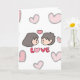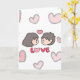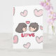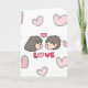 Celebre o seu amor com um toque fofo! Este encantador cartão de cumprimentos apresenta uma ilustração desenhada à mão no estilo Chibi de um casal doce, rodeado por corações cor-de-rosa suaves e uma mensagem "AMOR" ousada e divertida. É a maneira perfeita de expressar seus sentimentos para o seu parceiro de uma forma que se sente calorosa, pessoal e adorável.