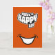 Um Cartão de Boas Festas Dobrável Moderno com Texto Feliz (Aniversário) com um gráfico de sorriso e uma mensagem 'Tenha um Dia Feliz'. Ele vem em uma variedade de cores brilhantes e também pode ser personalizado para qualquer cor que você desejar. O cartão pode ser usado como um cartão de aniversário ou como um cartão para qualquer ocasião. A mensagem interior é editável e pode ser personalizada por você.