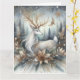 Cartão de Boas Festas Dobre com Rena em Branco e D