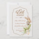 Celebre a alegria do Eid com este Cartão de Boas Festas Eid al-Fitr Mubarak Elegante, apresentando tipografia dourada refinada, uma moldura de arco islâmico gracioso e sutilhas botânicas delicadas em um fundo neutro suave.