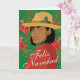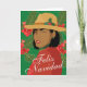 Espalhe alegria natalina com nosso cartão de Natal “Feliz Navidad” lindamente desenhado! Este cartão festivo apresenta uma linda mulher latina usando um chapéu fedora bege com um enfeite de azevinho de Natal. O texto na frente, “Feliz Navidad”, é exibido em uma fonte de caligrafia elegante, enquanto o interior oferece amplo espaço para uma mensagem personalizada para seus entes queridos.