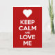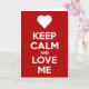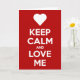 É o cartão de felicitações "Fique Calmo e Me Ame" clássico e muito fofo. Com um coração acima das palavras, este cartão é o presente único perfeito para ele ou ela neste Dia dos Namorados... Adquira o seu hoje!