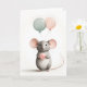 Arte minimalista de estilo Boho de um rato com balões rosa e verde. Cartão de felicitações em branco para aniversário, aniversário de casamento, novo bebê, agradecimento, etc.