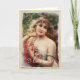 Cartão de Boas Festas Mulher Vitoriana com Rosas C