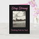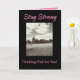 Expresse seus sinceros votos a uma sobrevivente de câncer de mama com uma mensagem de esperança 'Permaneça forte'. O cartão preto e cinza ousado com toques de rosa tem uma imagem inspiradora de uma criança empinando uma pipa em um dia ensolarado. O verso positivo de fé, esperança e amor no interior enviará seus pensamentos de apoio e carinho.