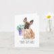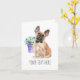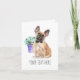 Personalize este cartão de cumprimentos para enviar a qualquer dono ou amante de bulldog francês por aí! Com efeito aquarela, o frenchie apresenta um laço preto.