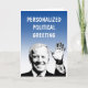 Não dê apenas um cartão de cumprimentos anônimo, torne-o pessoal! Basta preencher os campos de texto e você terá seu próprio cartão pessoal! Você pode até entrar na ferramenta de design para ajustar as coisas exatamente como você gosta! Navegue por centenas de designs políticos e de eleições em camisetas, adesivos, moletons, botões, cartões, canecas, pôsteres e muito mais da Politiclothes.com