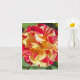 Este cartão de cumprimentos encapsula a essência do charme de uma rosa variegada vermelha e amarela, celebrando a beleza encontrada no mundo natural e convidando o destinatário a compartilhar o espanto e o encanto desta flor magnífica. Foto de Raymond Steeves.