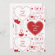 Um cartão de cumprimentos plano projetado com um padrão de dia dos namorados com dois nomes, vermelho no branco. Personalize o cartão de cumprimentos com os nomes do seu coração, cor do fundo, entre outras opções.