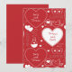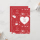 Um cartão de cumprimentos plano projetado com um padrão de dia dos namorados com dois nomes, branco no vermelho. Personalize o cartão de cumprimentos com os nomes do seu coração, cor do fundo, entre outras opções.