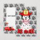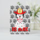 Este cachorrinho quer ser seu namorado. O coração em sua coleira diz “EU TE AMO” e ele está sentado em cima de letras grandes e grossas que dizem, SEJA MEU. O fundo é um padrão de pegadas cinzas. No verso há uma área para adicionar texto.