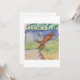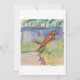 Cartão de cumprimentos com uma imagem de um cão pintado à mão pulando de um dock.