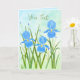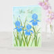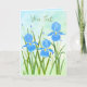 Um cartão com uma bela imagem de íris azuis. O fundo, imagem e texto podem ser personalizados. A obra de arte original foi criada por WB com tinta acrílica.