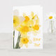 Narcisos Lindos em fundo branco. Cartão totalmente personalizável.