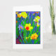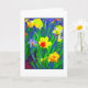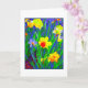 Cartão com narcisos brilhantes e alegres na frente. Uma pintura digital a partir de uma fotografia. Em branco por dentro para sua própria mensagem.